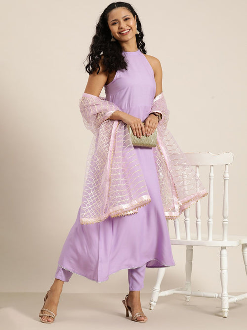 Dhimhi Women's Women's Beautiful American Silk Fabric Embroidery Work Flared Anarkali Pant and Dupatta Set