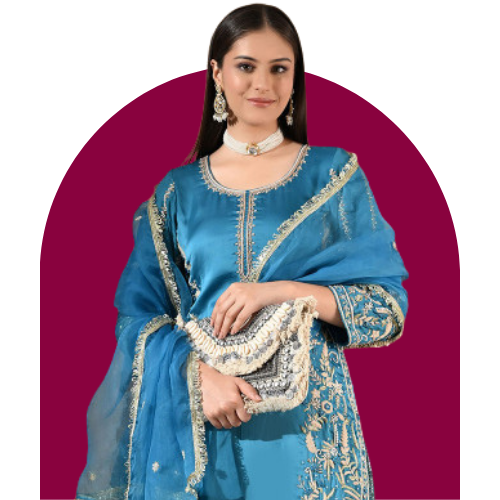 Dhimhi Women's Ethnic Motifs Embroidered Regular Gotta Patti Kurta with Palazzos & Dupatta