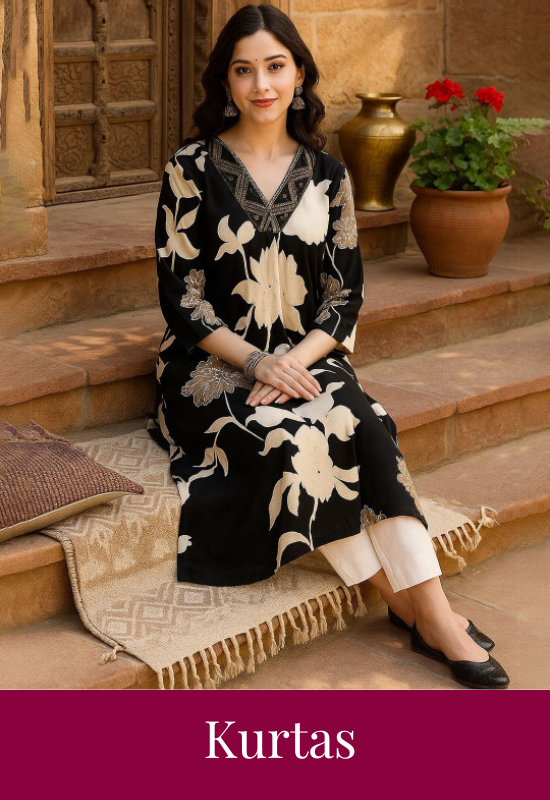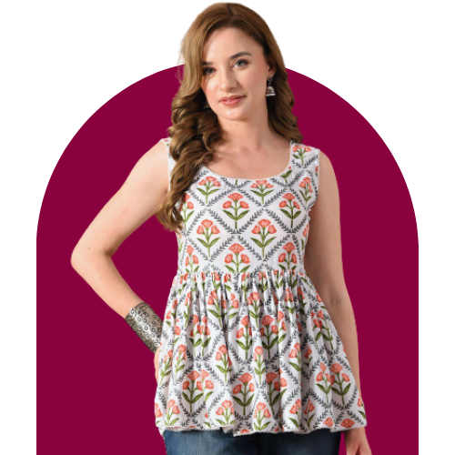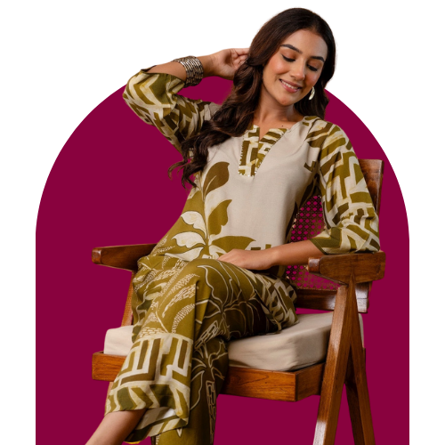 Dhimhi Women's Floral Printed Pure Cotton Kurti with Trousers