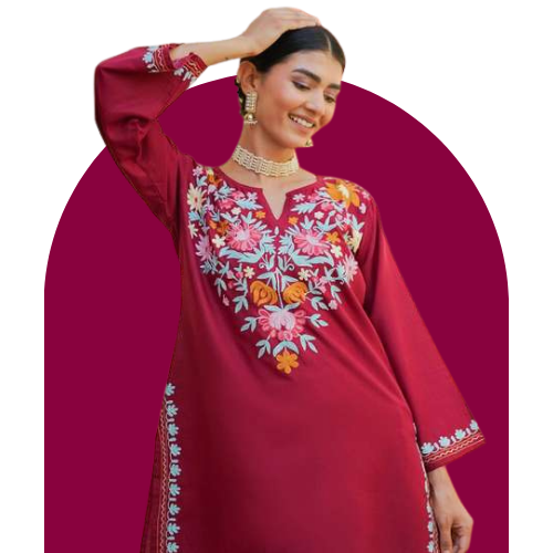 Dhimhi Women's Floral Embroidered Regular Pure Cotton Kurta With Trousers & Dupatta