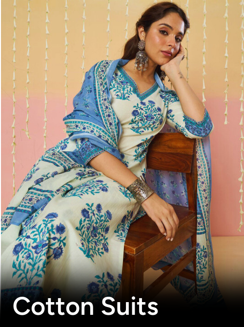 Dhimhi Women's Ethnic Foil Printed Shoulder Straps Pure Cotton Kurta Set