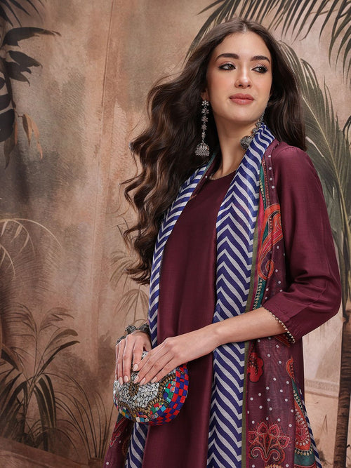 Dhimhi Women's Ethnic Motifs Printed Regular Kurta with Trousers & Dupatta
